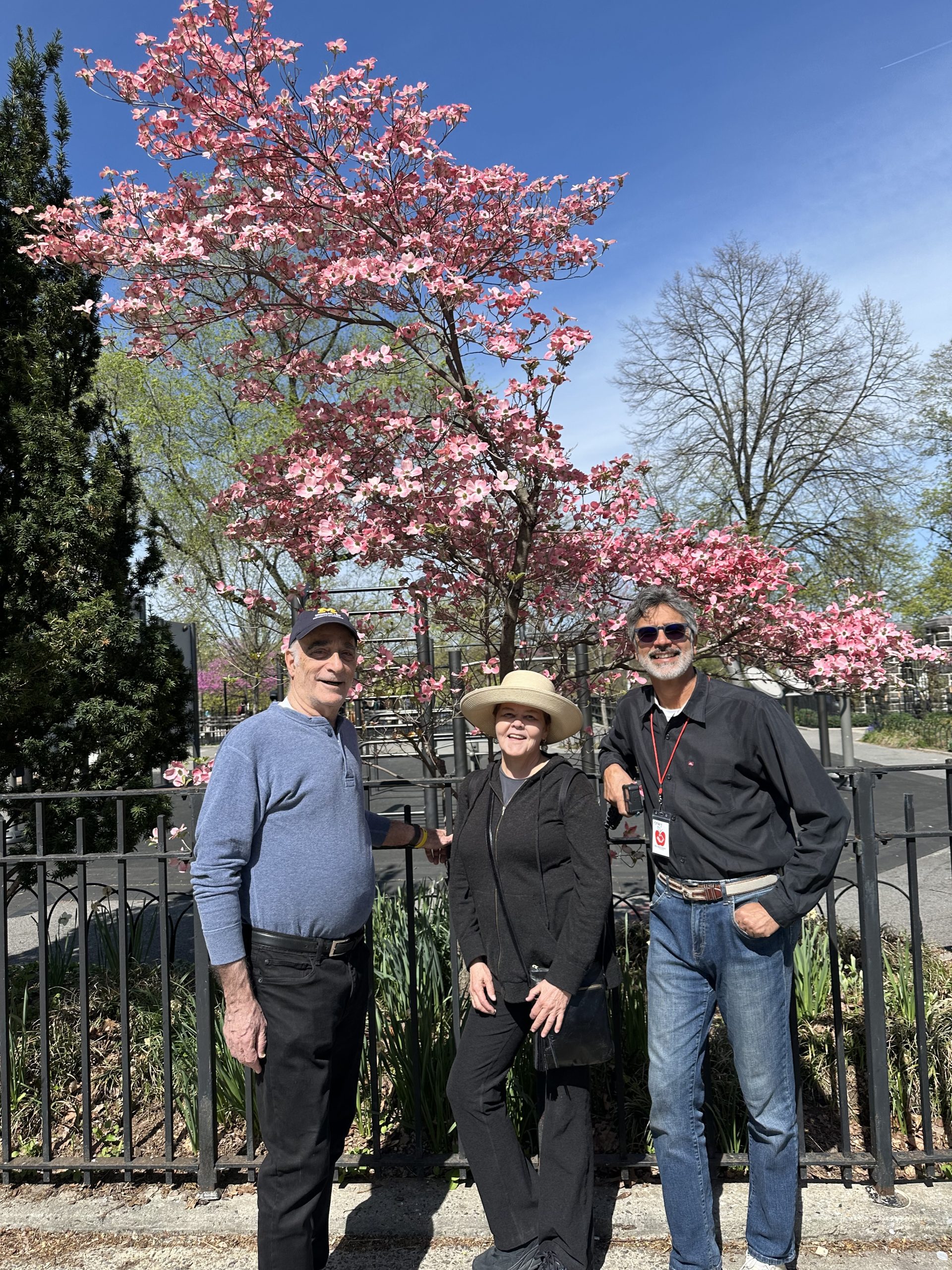 Jay Teitler, Rebecca Batt, and Teddy Urena outside 190th Street Station