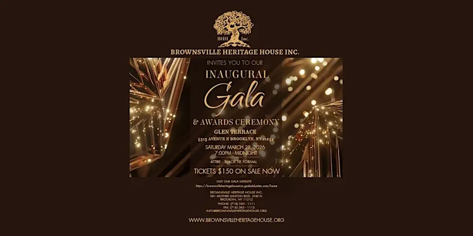 The Inaugural Gala for Brownsville Heritage House Inc. (BHH) is more than an elegant evening, it is an opportunity to honor, preserve, and uplift the rich cultural legacy of Brownsville. This special event brings together community leaders, supporters, and visionaries who believe in safeguarding local history and empowering future generations.Guests will enjoy a beautifully curated experience at one of Brooklyn’s premier catering venues while directly contributing to the continued growth and revitalization of BHH. Funds raised will support operations, educational programs, cultural exhibitions, youth initiatives, and the preservation of invaluable historical archives that tell the story of Brownsville’s past, present, and future.Attending the gala is a chance to celebrate community pride, invest in meaningful work, and stand with an institution dedicated to keeping Brownsville’s heritage alive. It’s an evening of purpose, connection, and impact—one that helps ensure this vital cultural treasure continues to thrive for generations to come.
