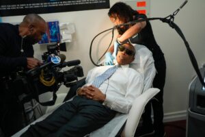 The mayor toured the facility on Frederick Douglass Blvd between 136th and 135th Street. During his visit, Angela performed a laser hair removal procedure, which she said was designed to permanently remove hair after several treatments.